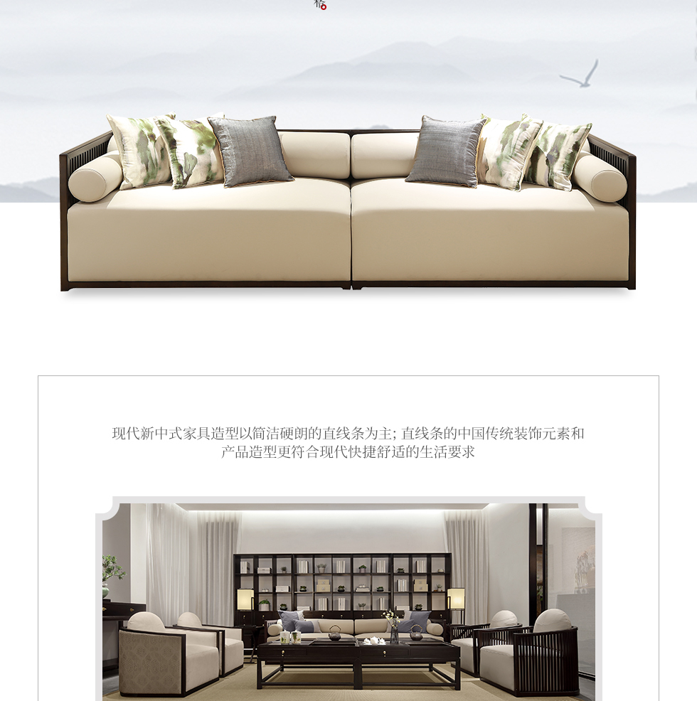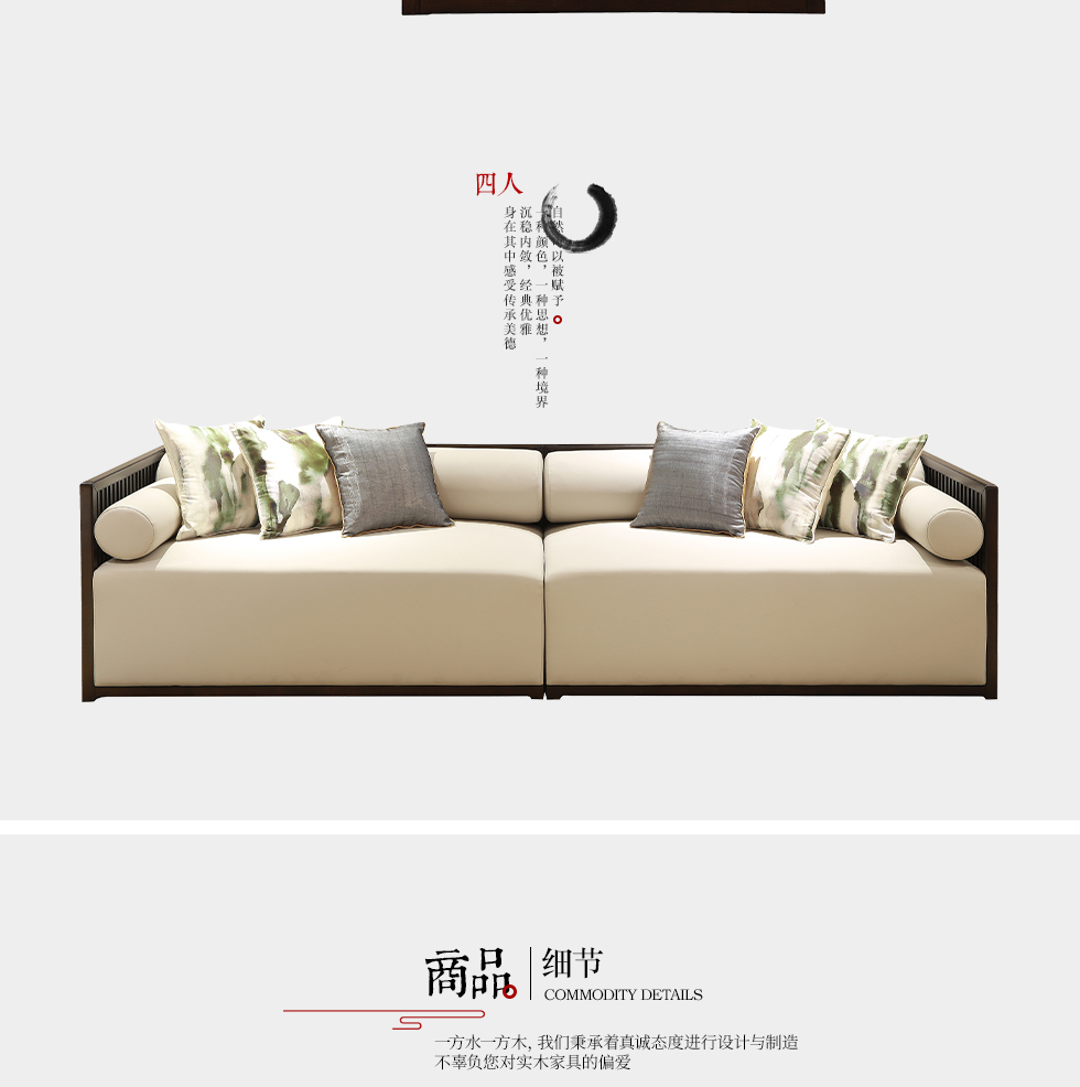 云物家具 四人沙发 新中式风格 乌丝檀木+超纤皮 |