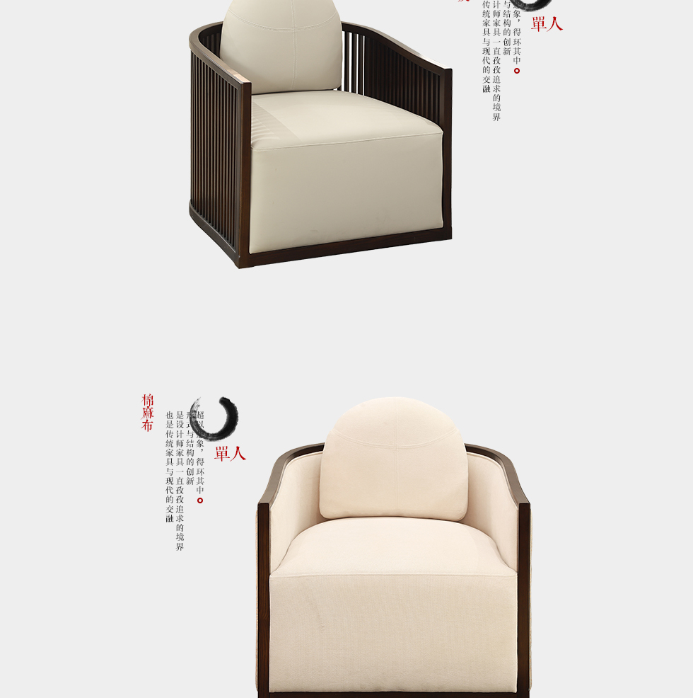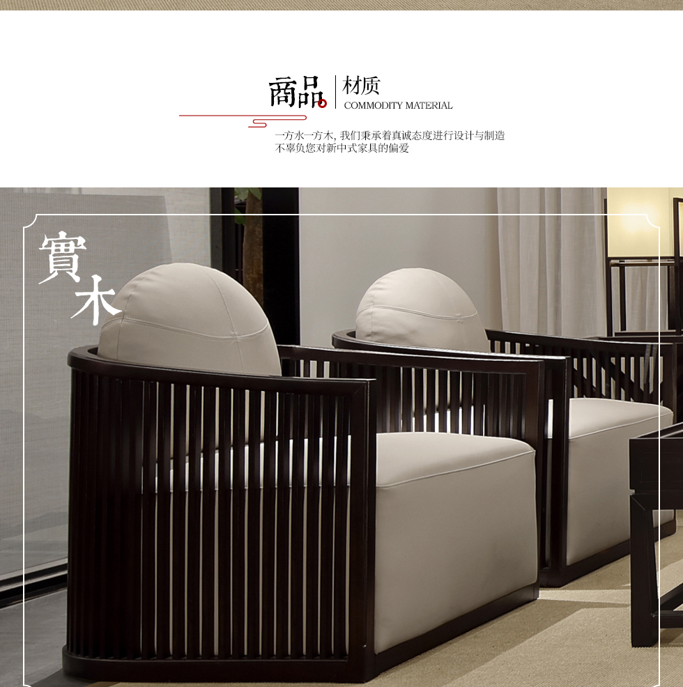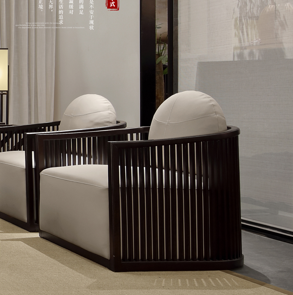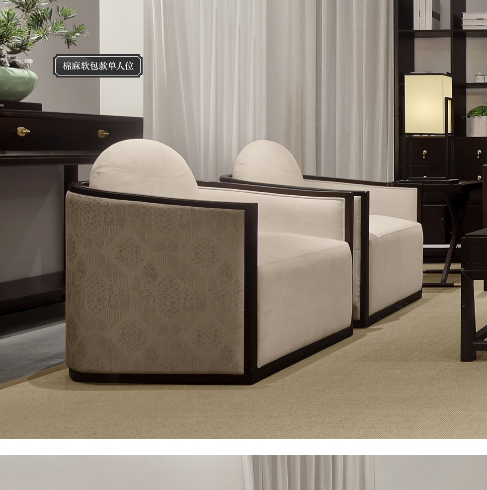 云物家具 单人沙发 新中式风格 乌丝檀木+棉麻布