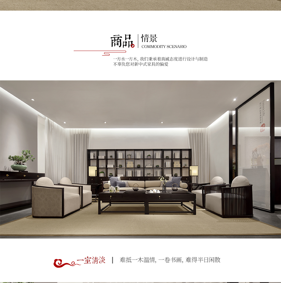 云物家具 组合沙发 新中式风格 乌丝檀木+棉麻布
