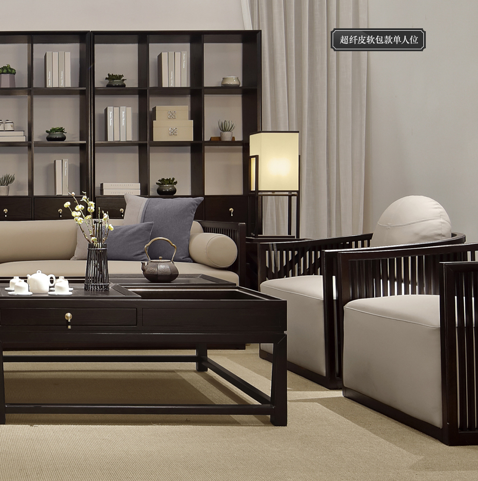 云物家具 组合沙发 新中式风格 乌丝檀木+超纤皮¥10709