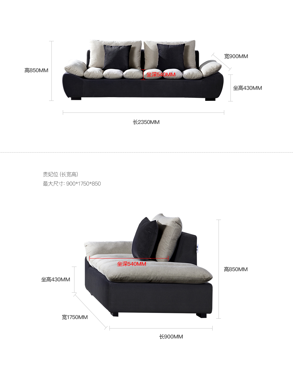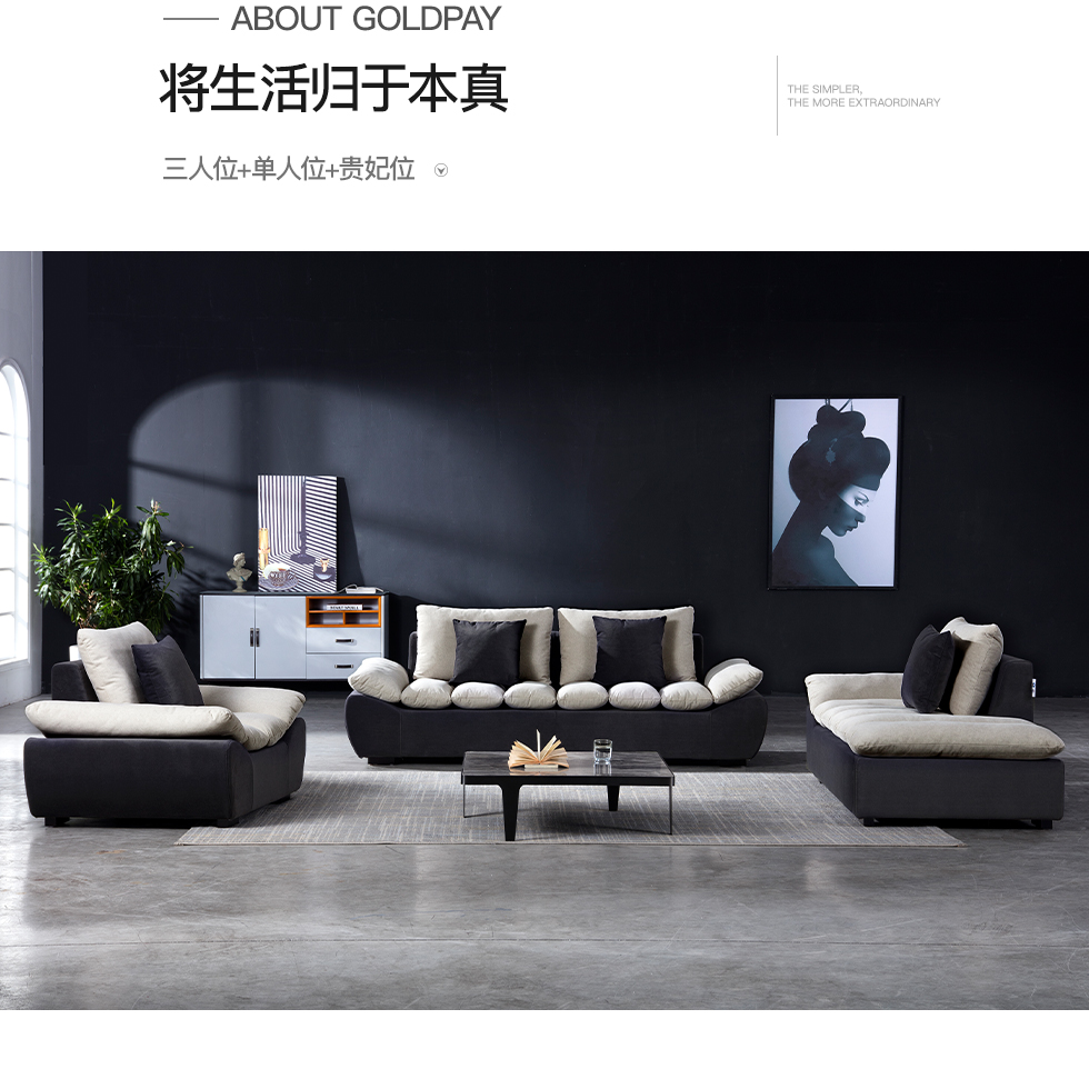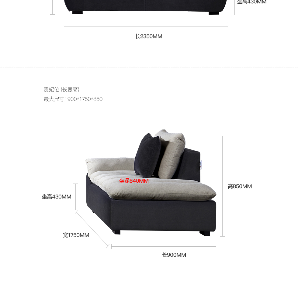 雅蕾斯 现代简约 1+3+坐左贵妃 科技布+松木底架+高海绵座包靠包+防锈五金(沙发脚)¥8633