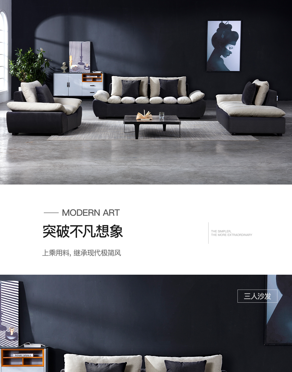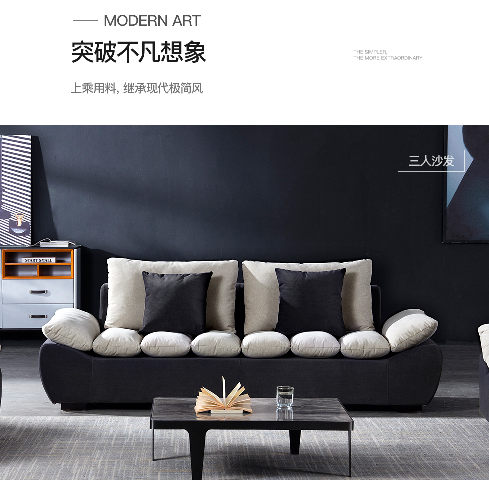 雅蕾斯 现代简约 1+2+3组合沙发 科技布+松木底架+高弹海绵座包+九孔纤维棉靠包¥6778
