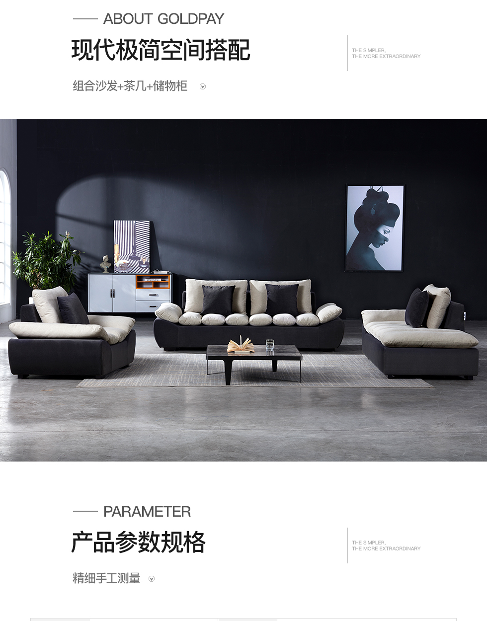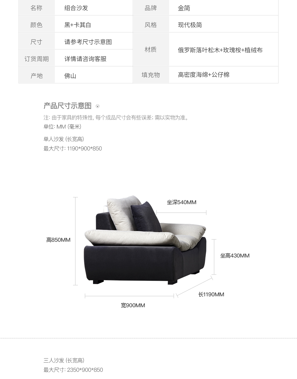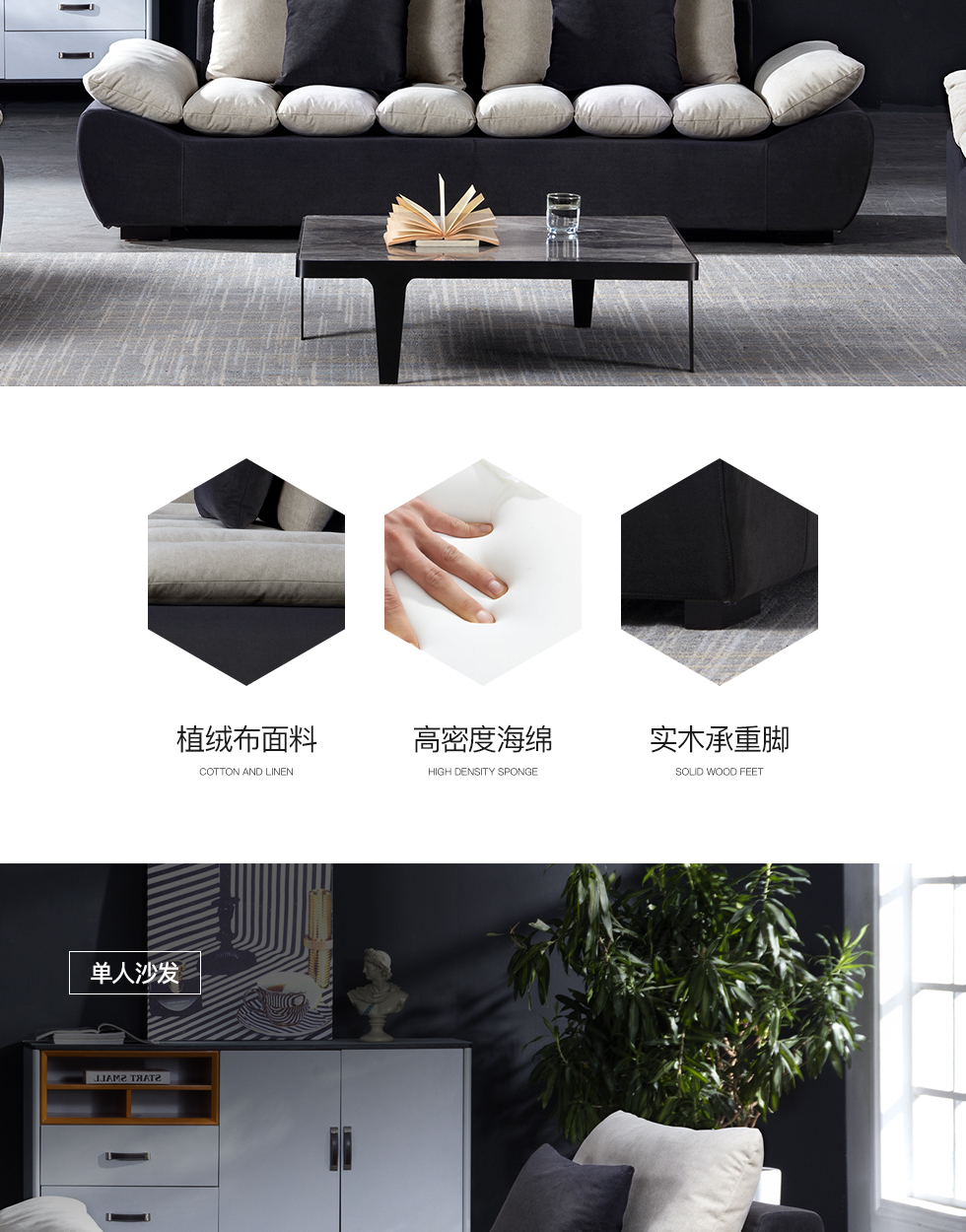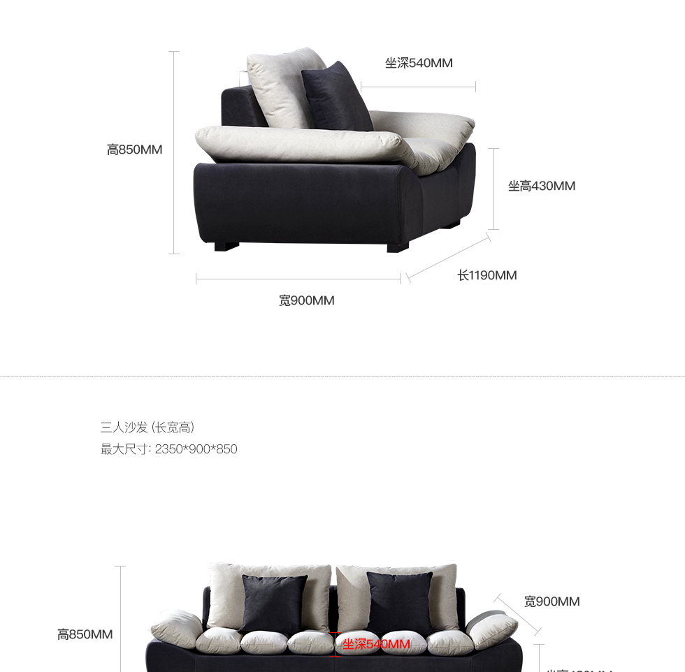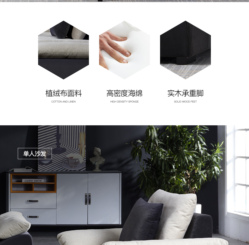 雅蕾斯 现代简约 组合沙发(单扶2位*2+脚踏) 科技布+松木底架+高回弹海绵座包靠包+公仔棉(抱枕)¥7573
