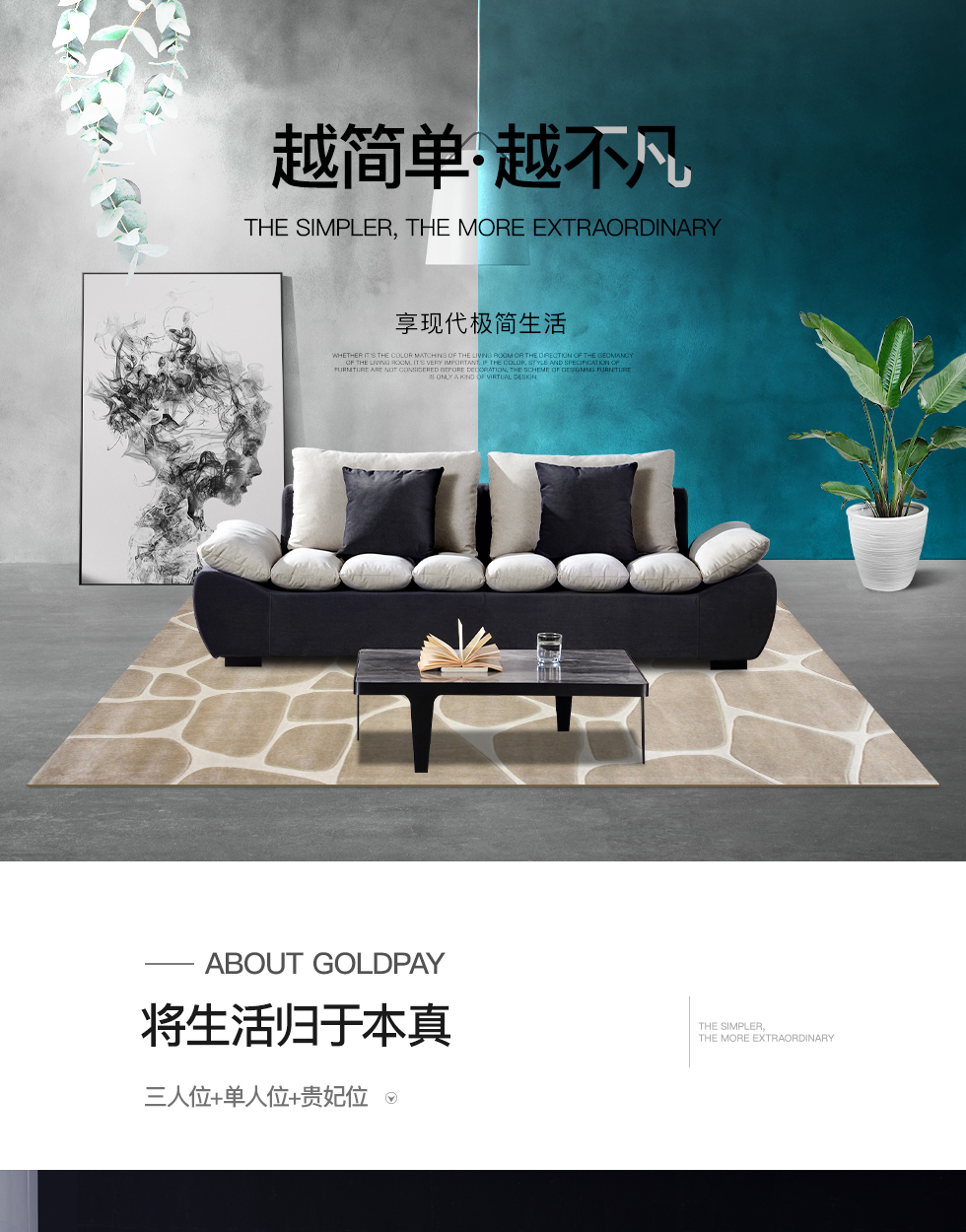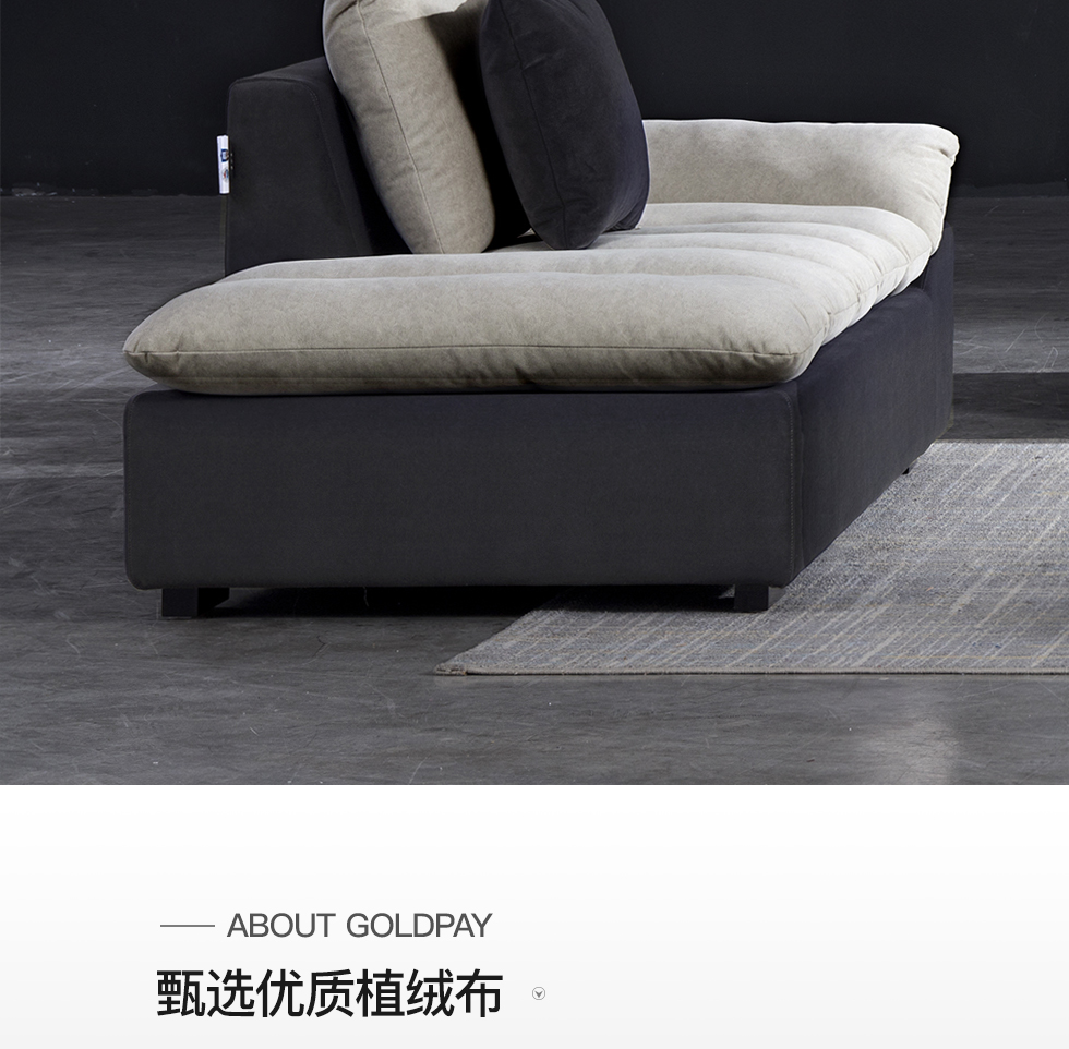 左右沙发 坐右转角功能沙发 现代轻奢 松木内框+接触面为真皮.非接触面为仿皮+五金脚