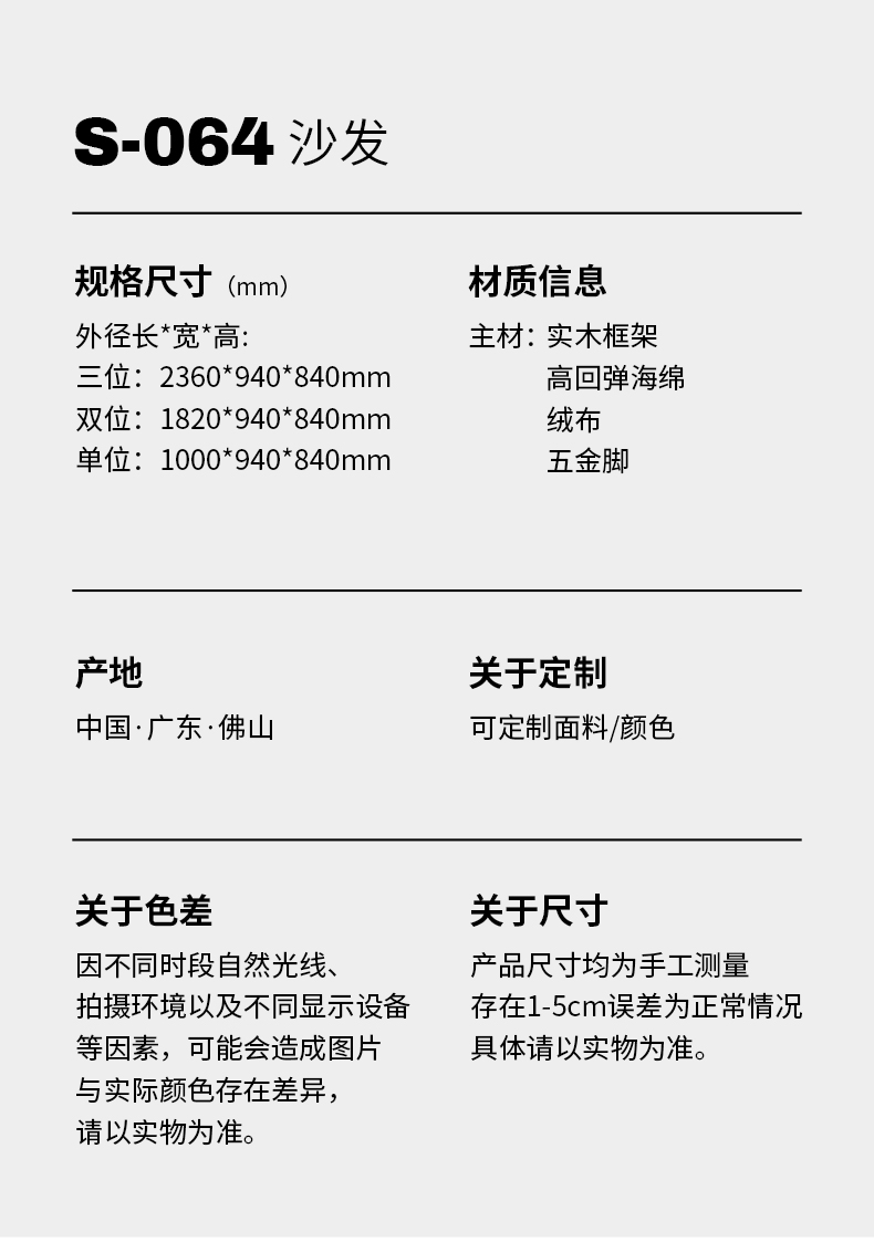 巴洛克 1+2+3组合沙发 极简 实木框架+科技绒布+高回弹海绵