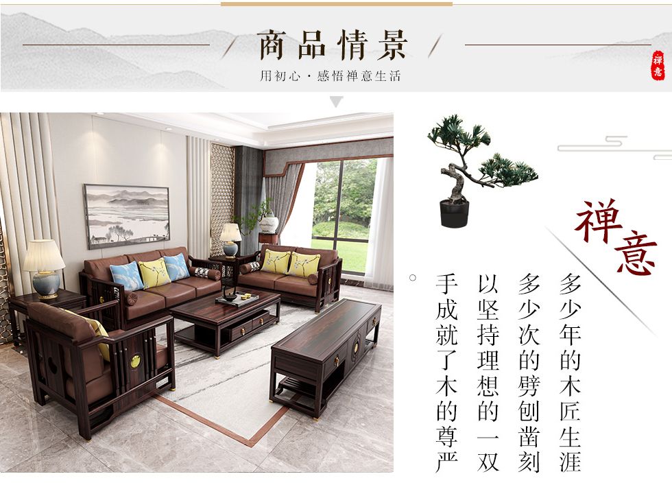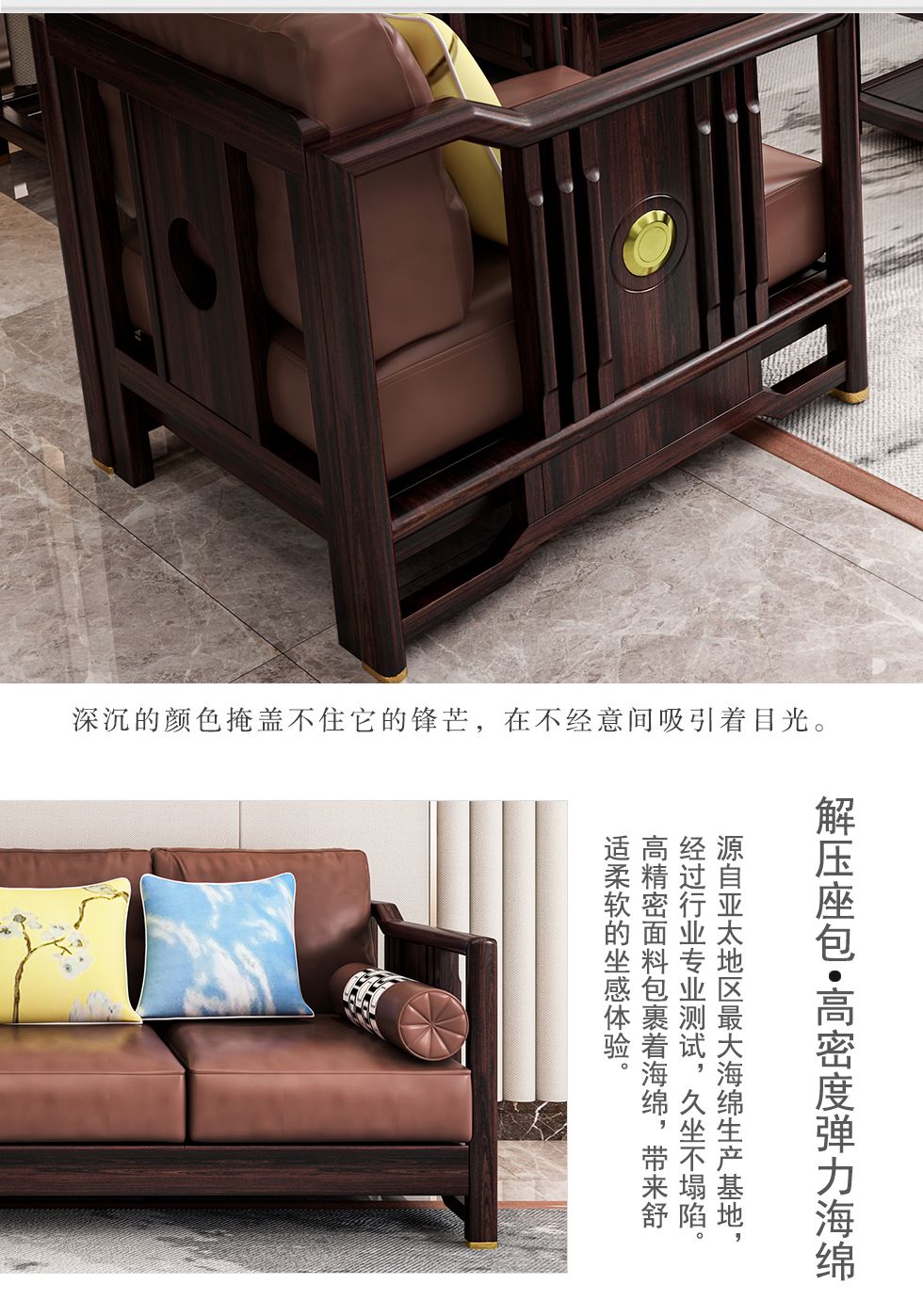 如懿 新中式 1+2+3沙发 乌金木+多层实木+乌金木皮饰面+超纤皮| 商品详情 | 规格参数 | 已售(83) | 评价(0) | 购买咨询() | 产品实拍图 |