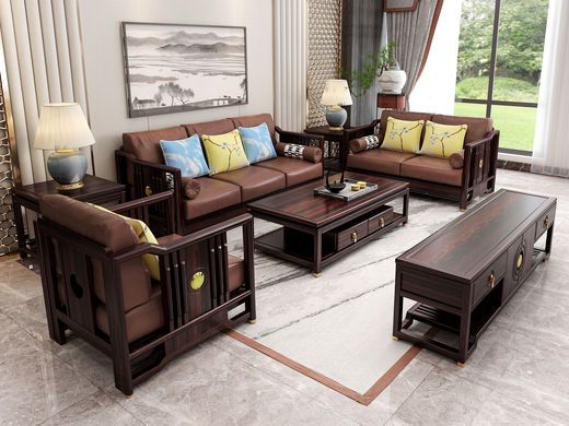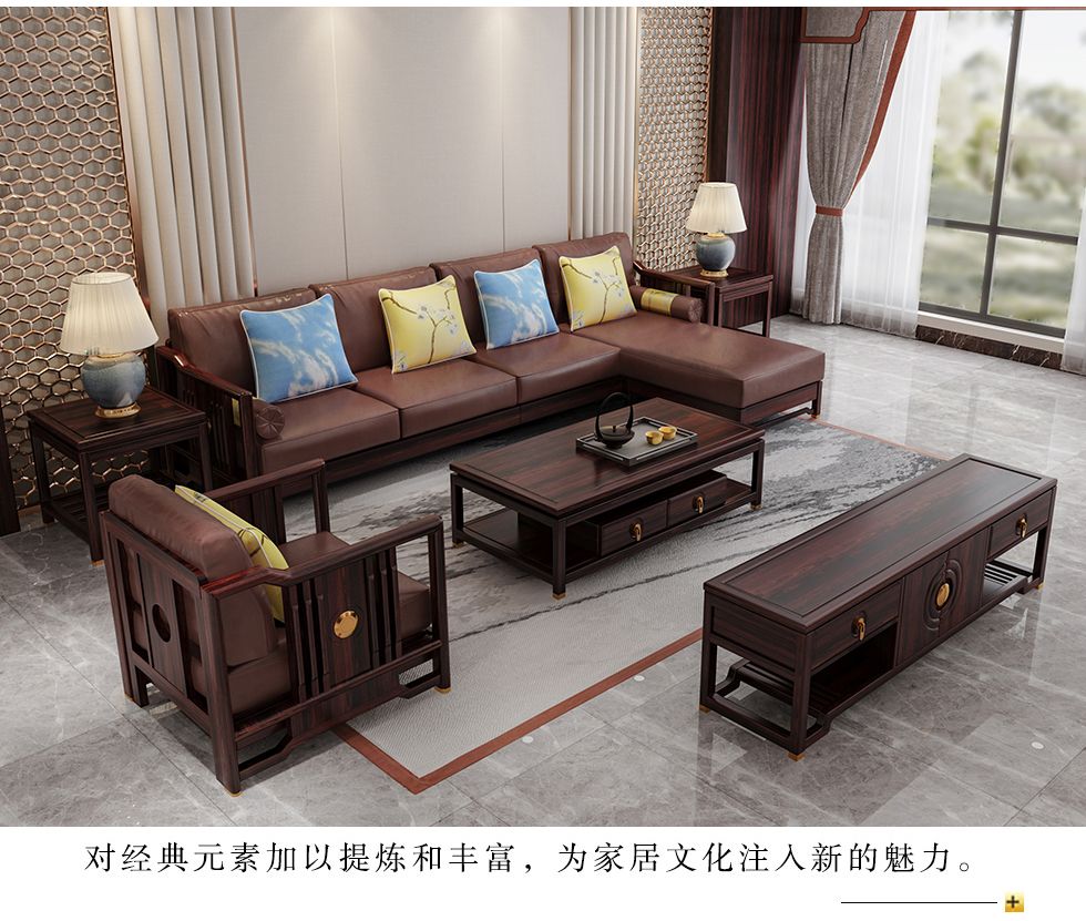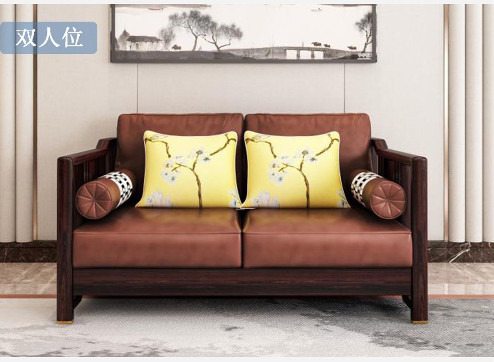 如懿 新中式 1+2+3沙发 乌金木+多层实木+乌金木皮饰面+棉麻布¥11989