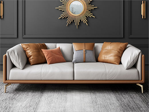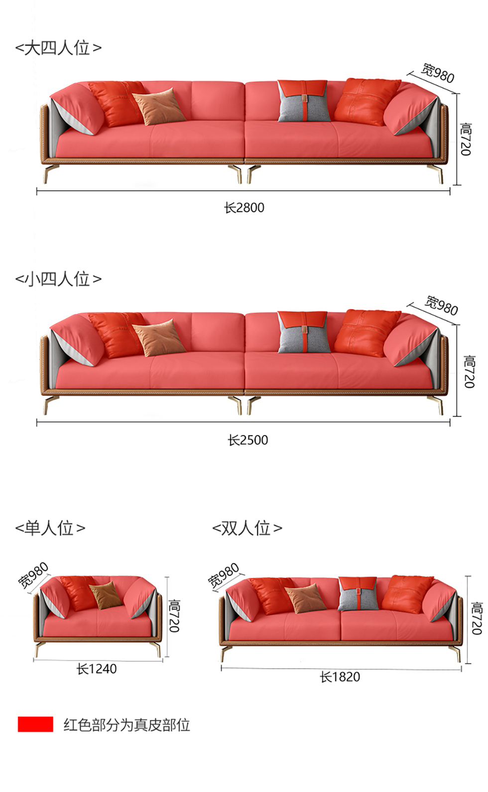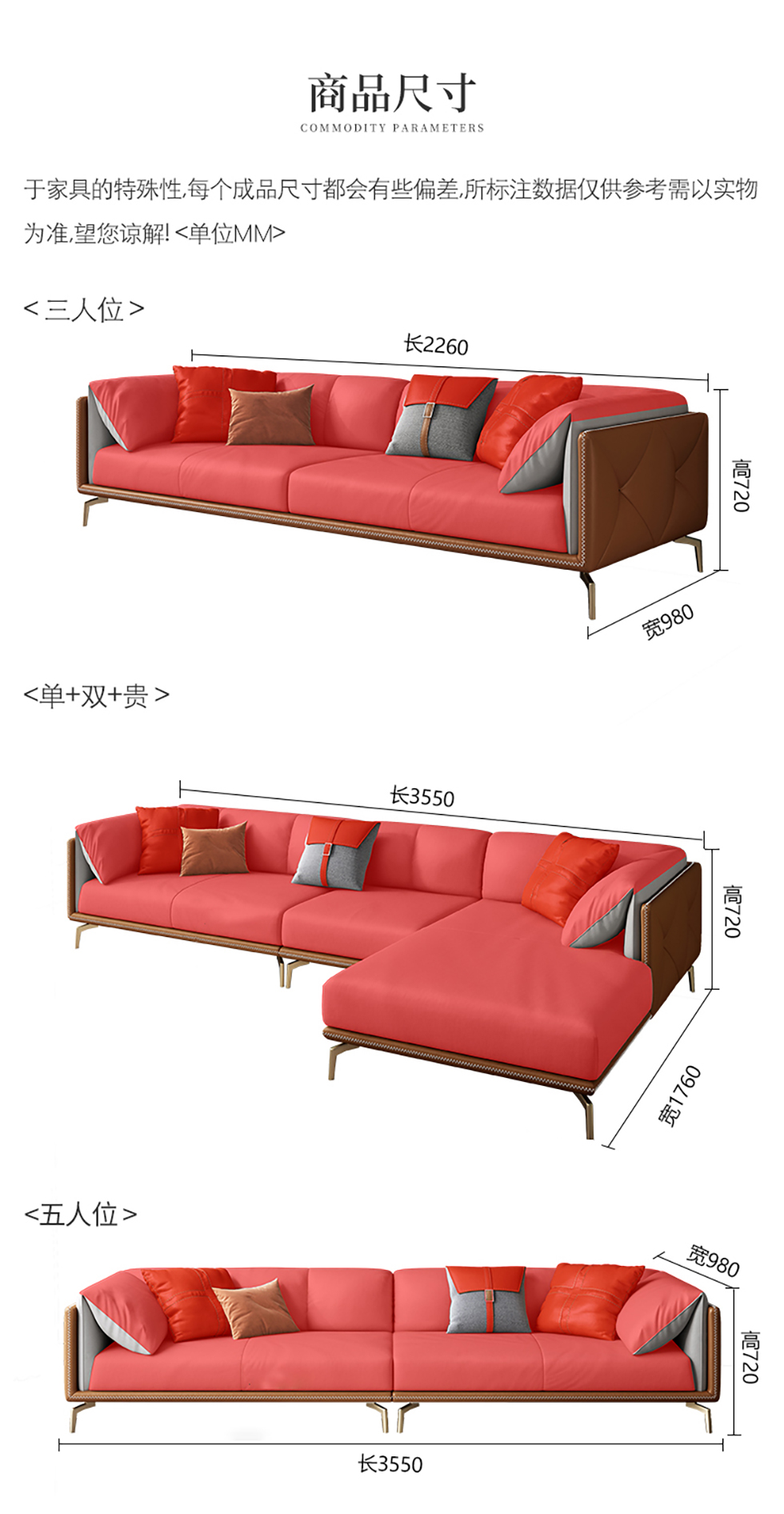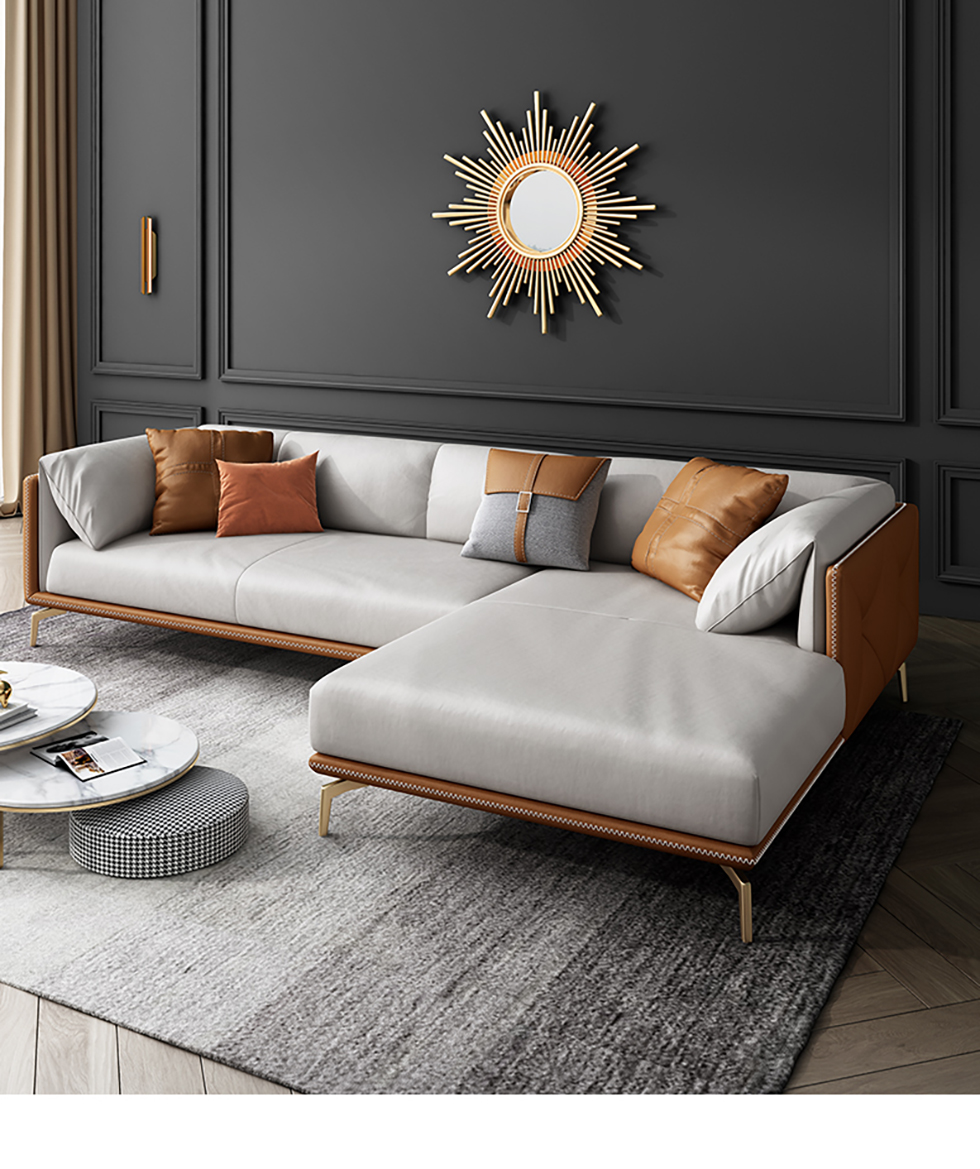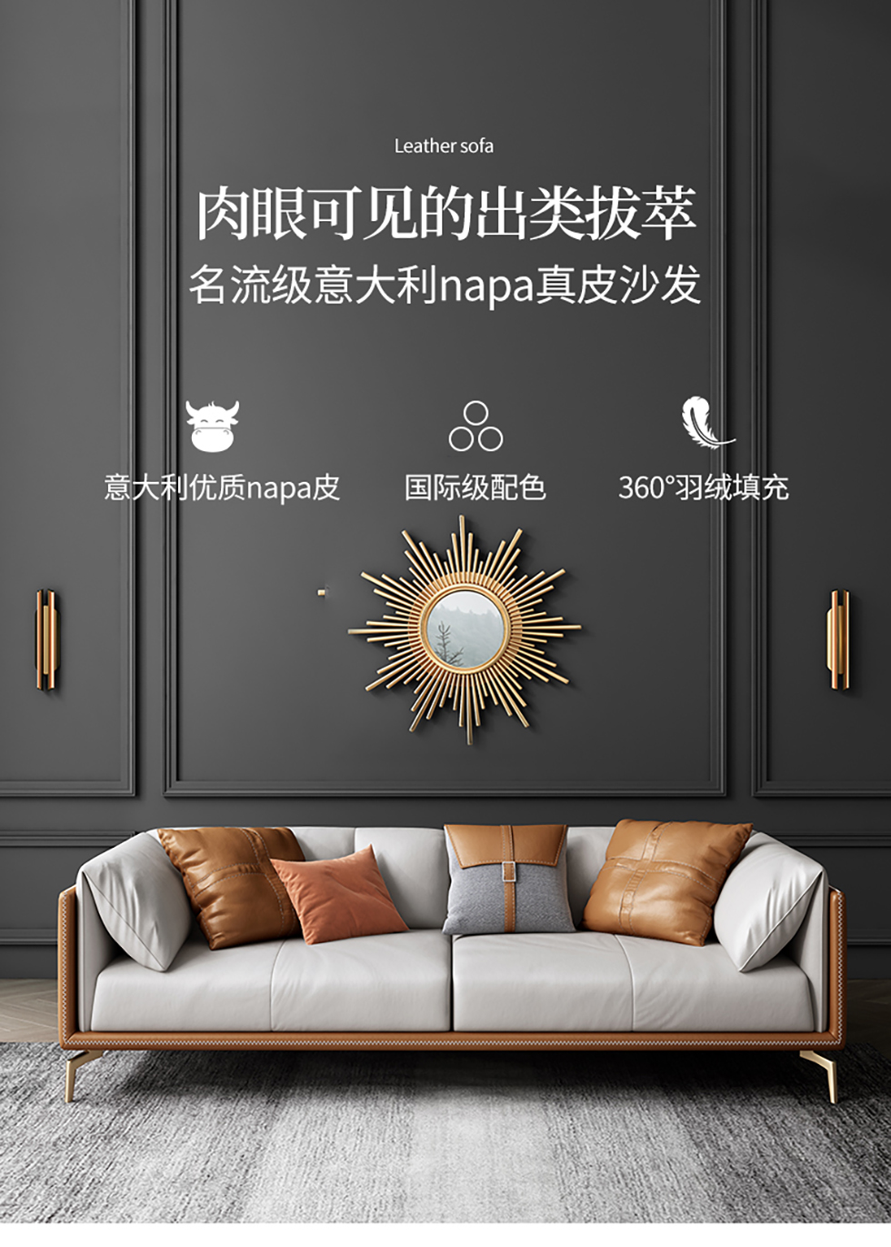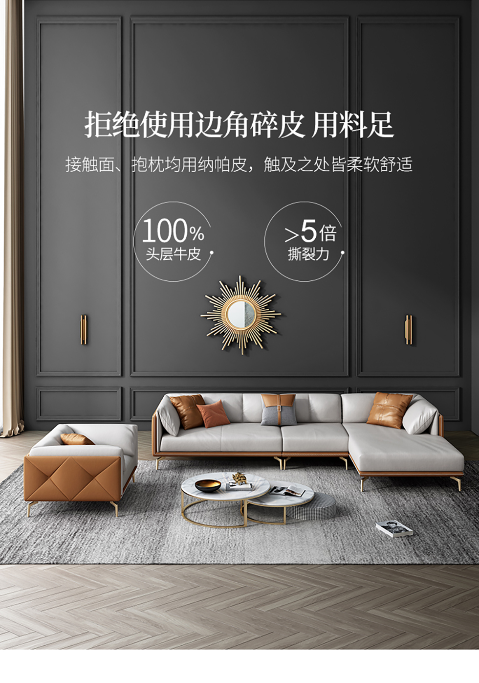 薇薇安 现代轻奢大小户型客厅组合沙发真皮五金镀金¥6755