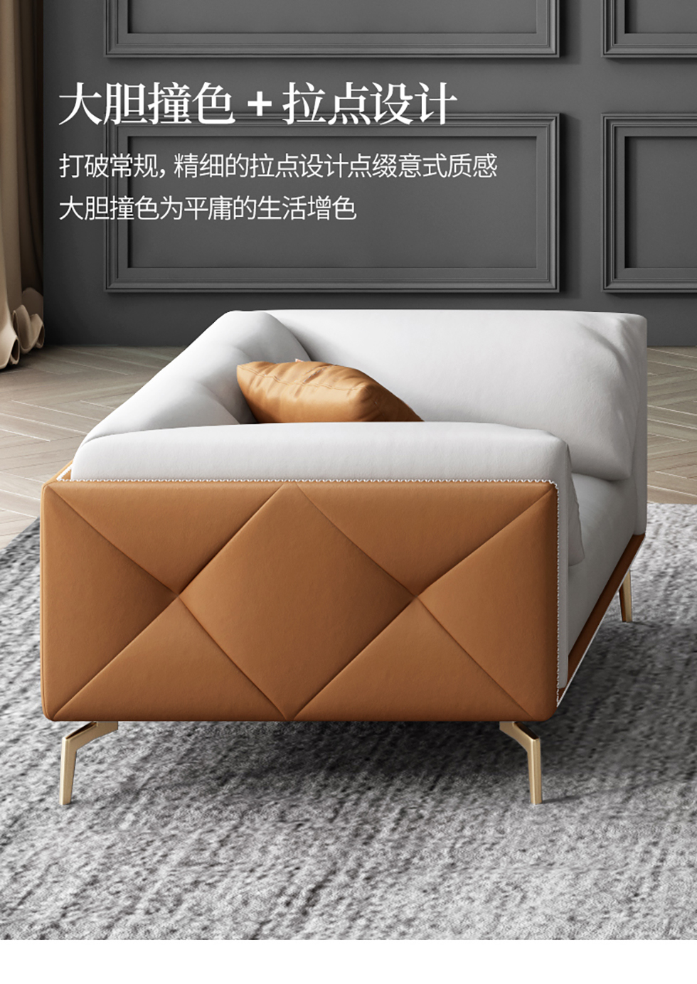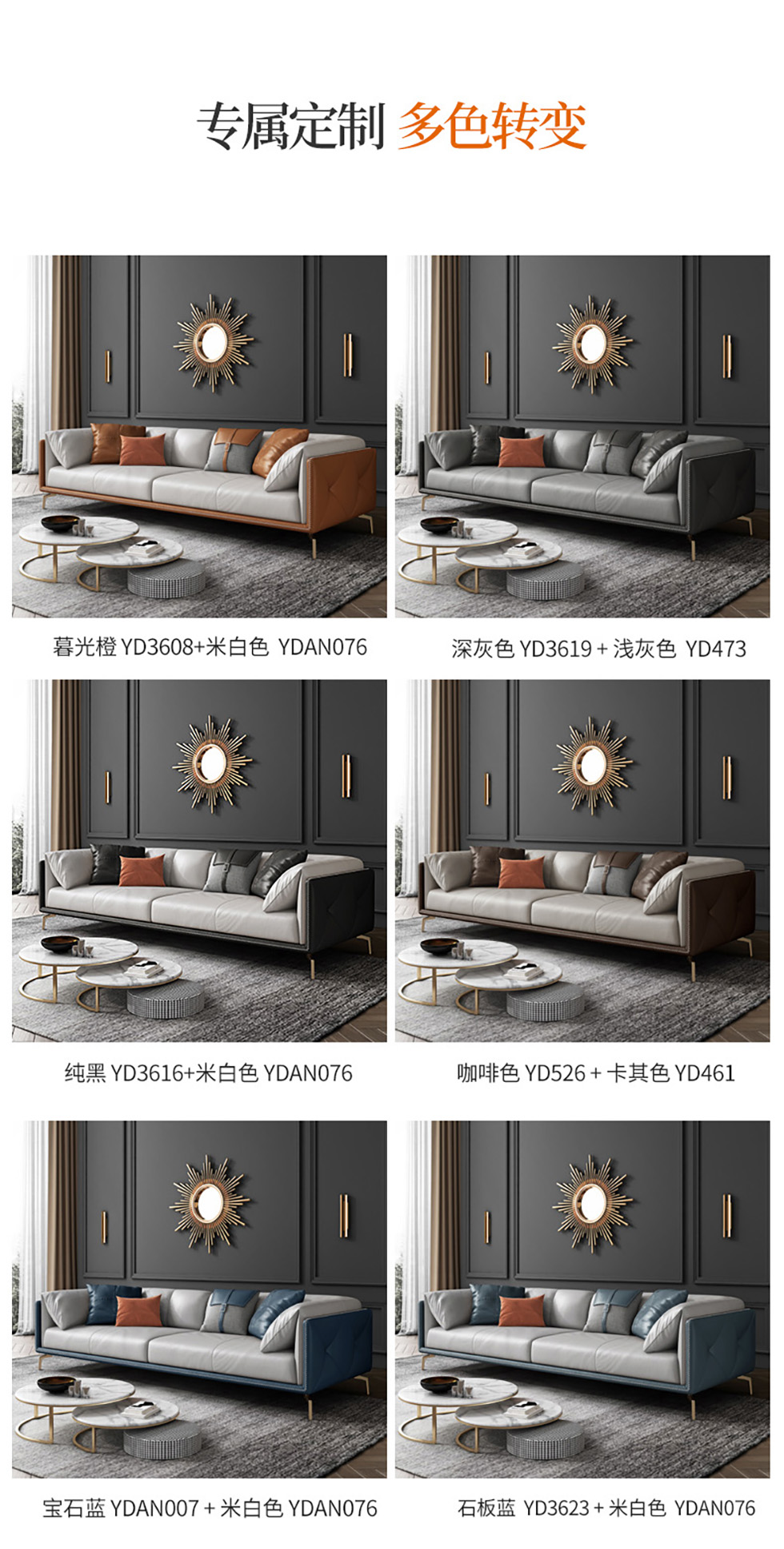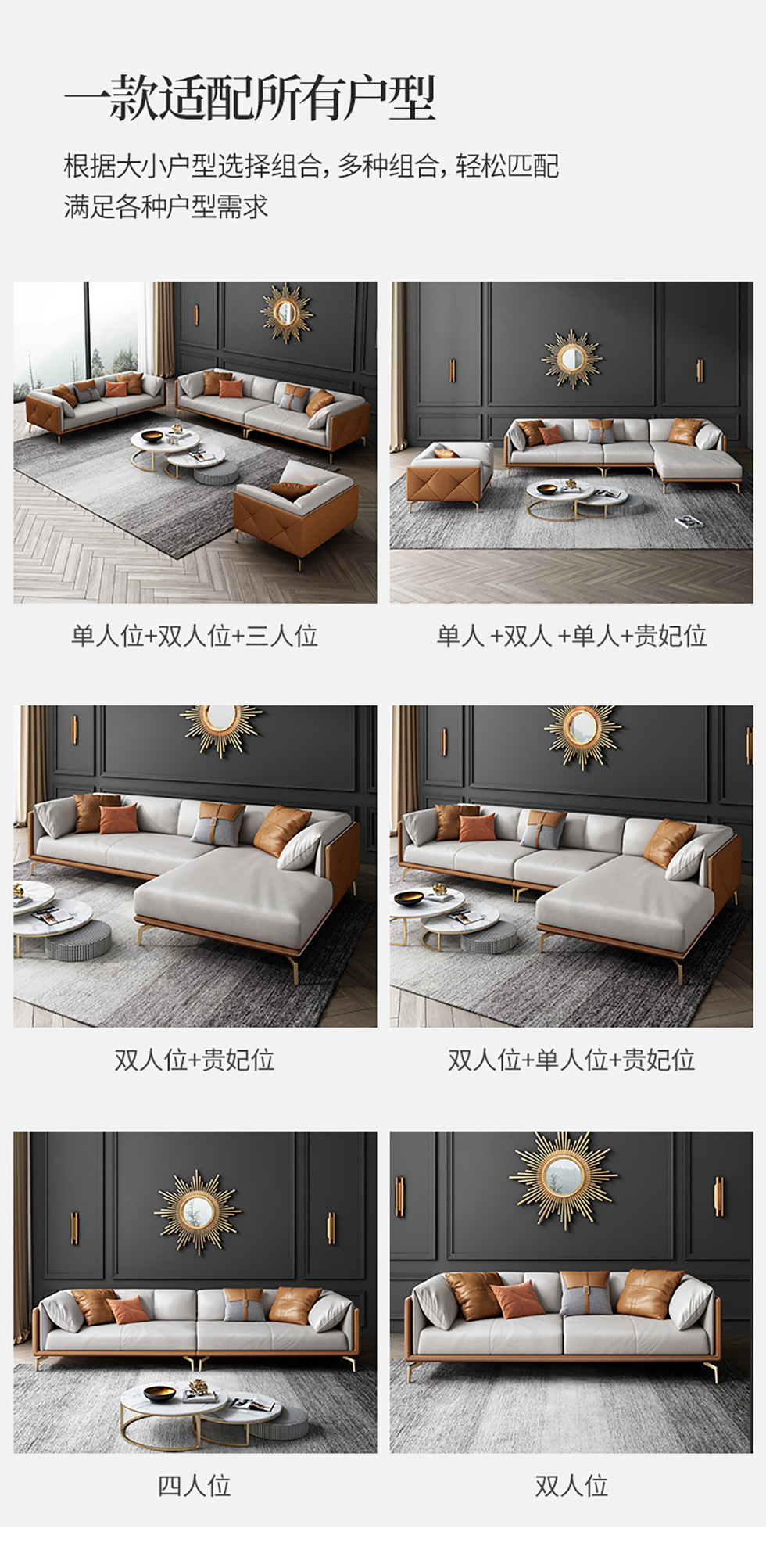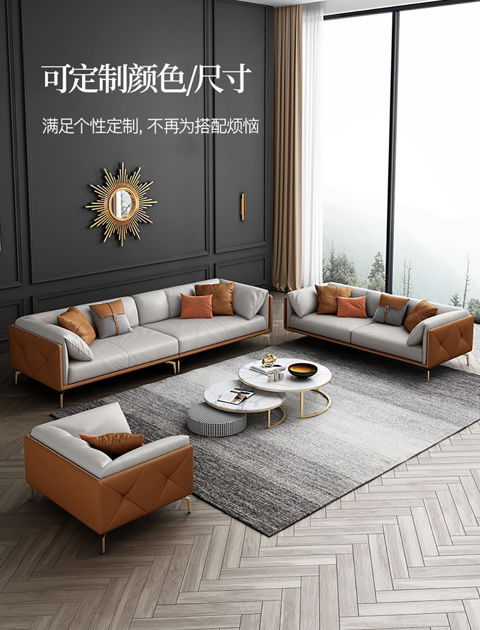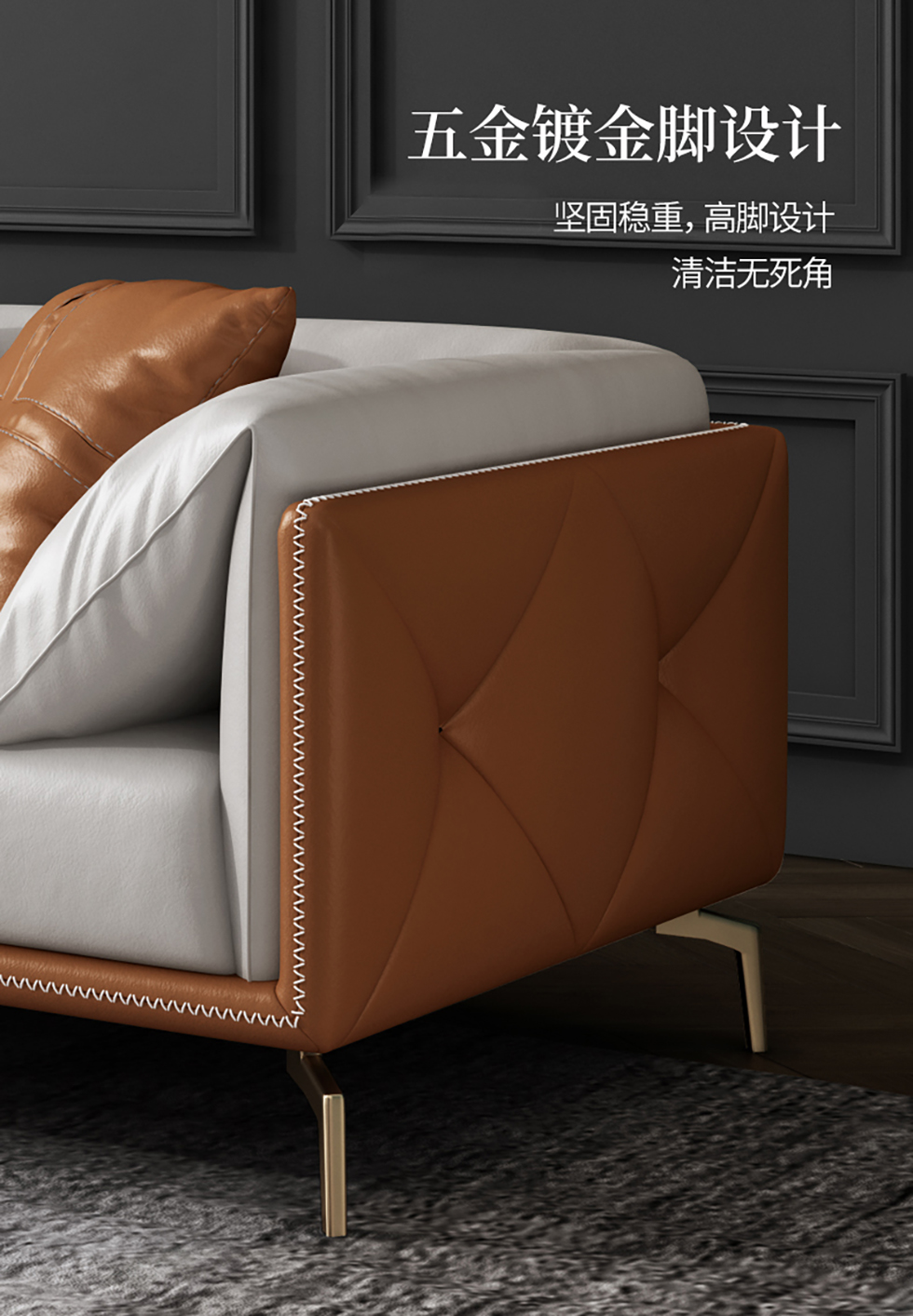 薇薇安 现代轻奢意式沙发组合大小户型客厅镀金简约风皮艺羽绒密度棉高弹柔软沙发 |