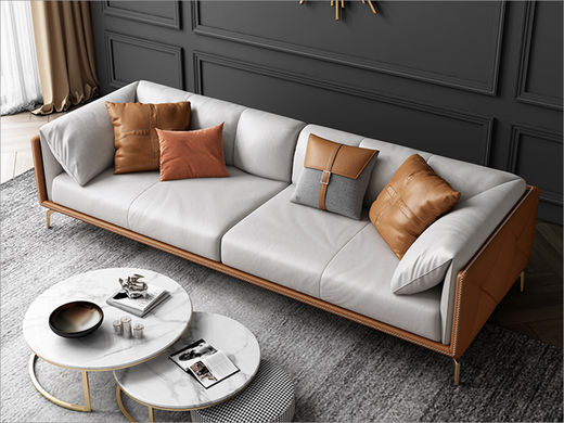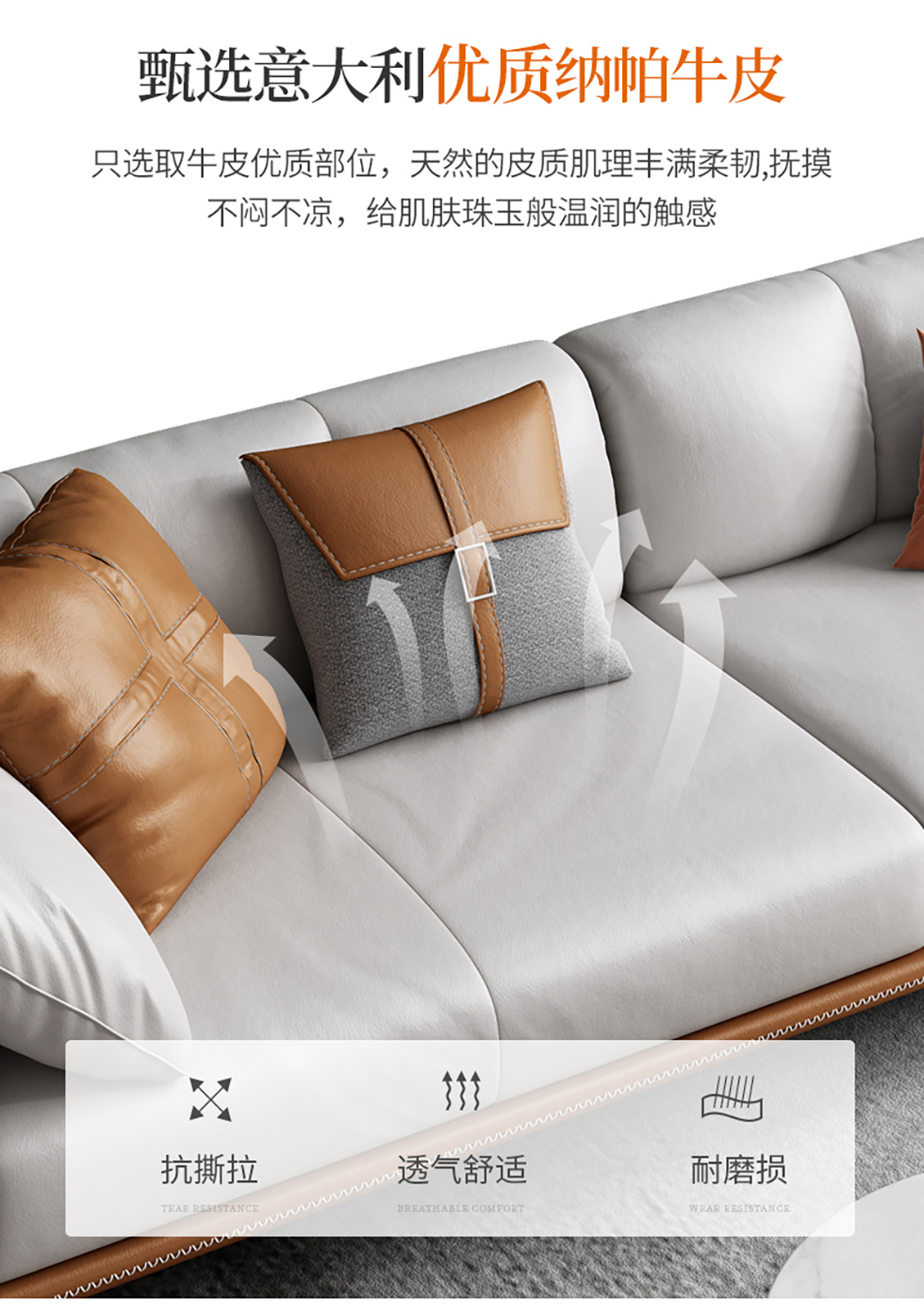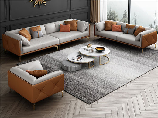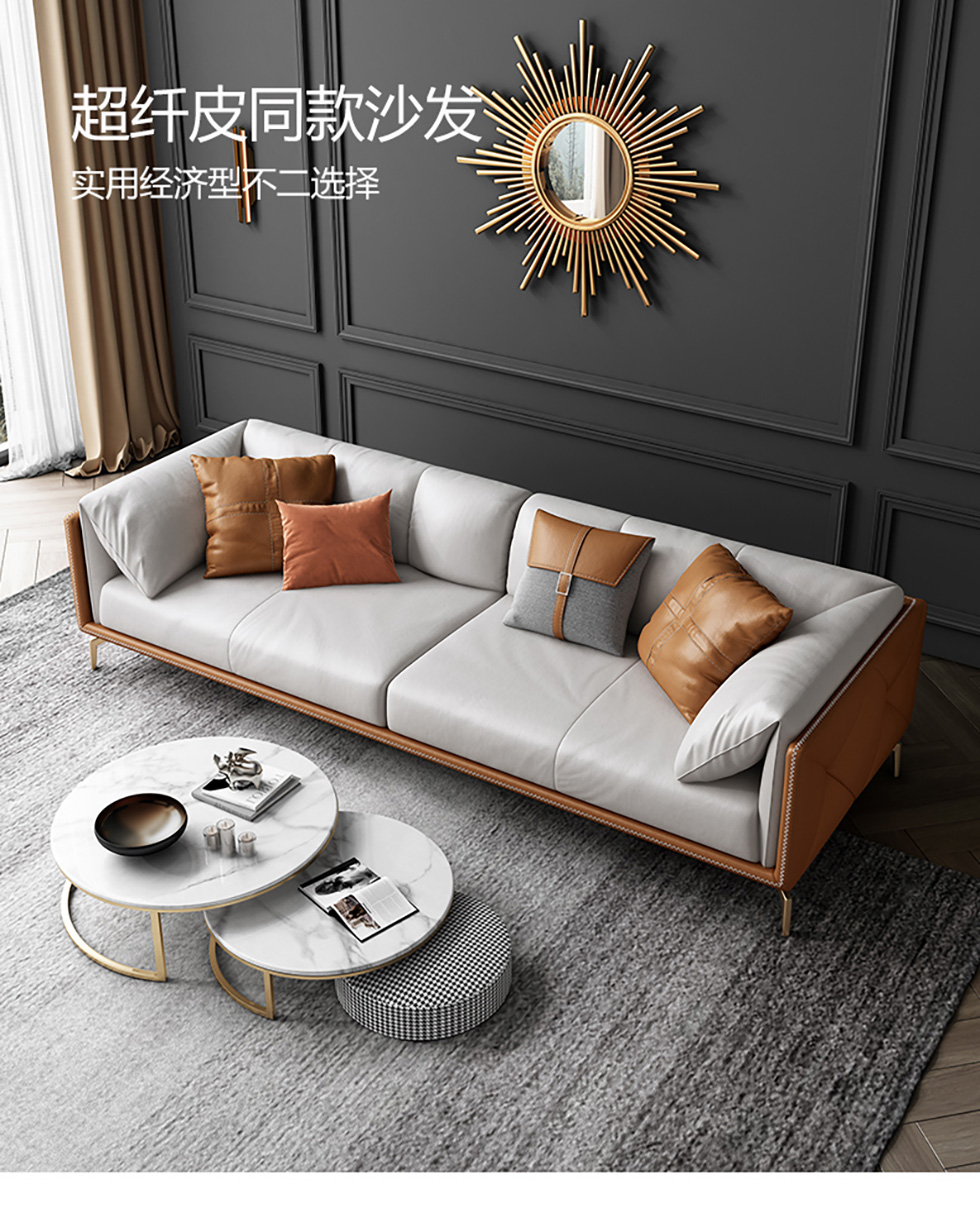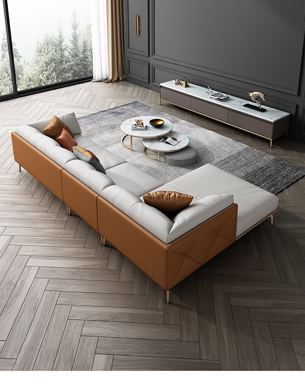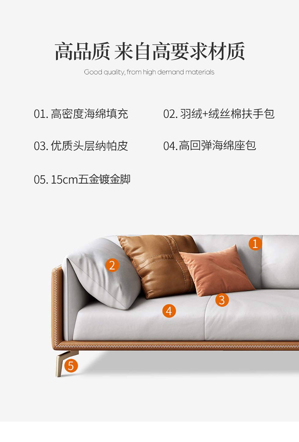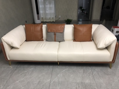 薇薇安 现代轻奢意式沙发组合大小户型客厅镀金简约风皮艺羽绒密度棉高弹柔软沙发 |