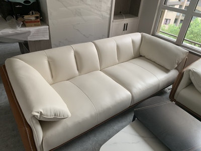 薇薇安 现代轻奢客厅小清新组合实木皮艺样板间奢华镀金沙发¥6624