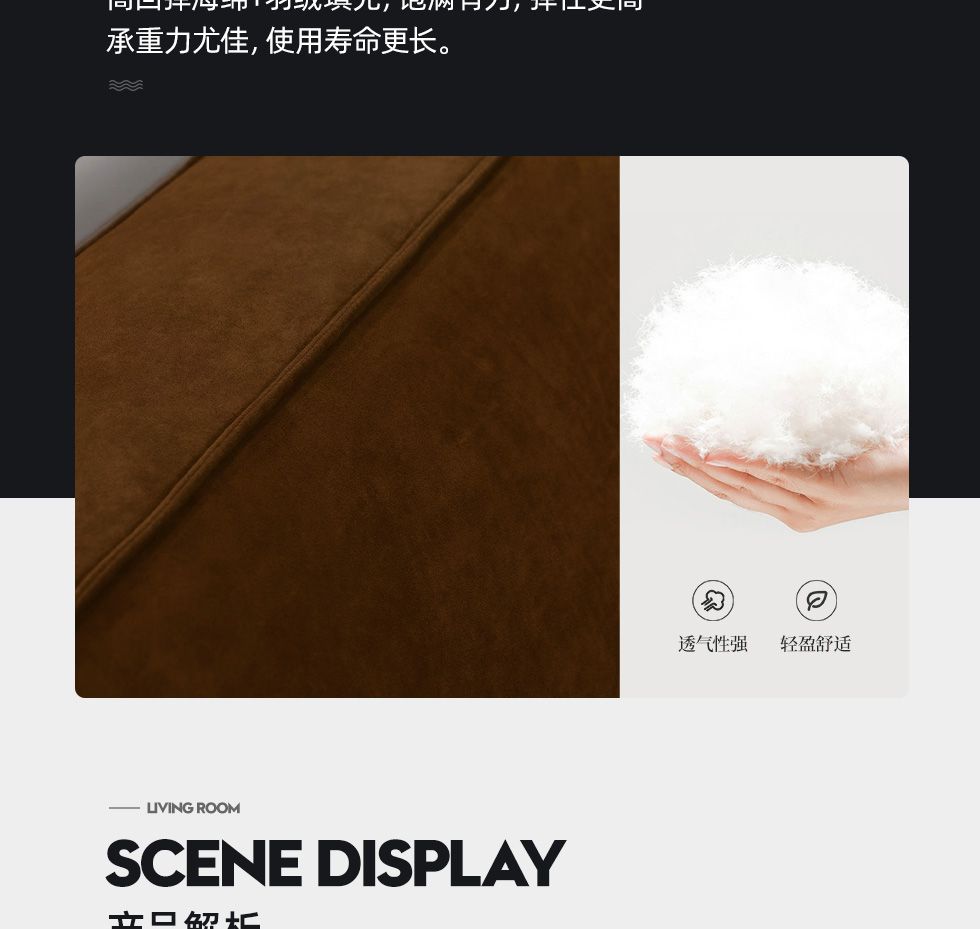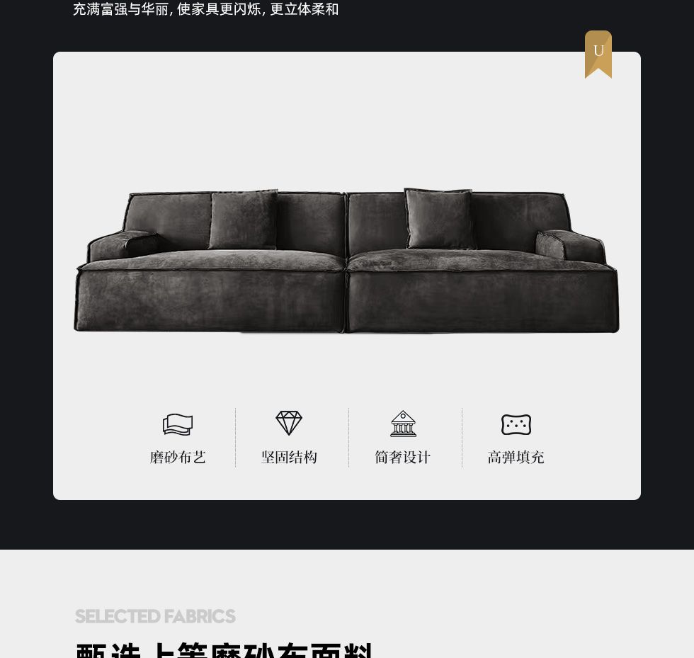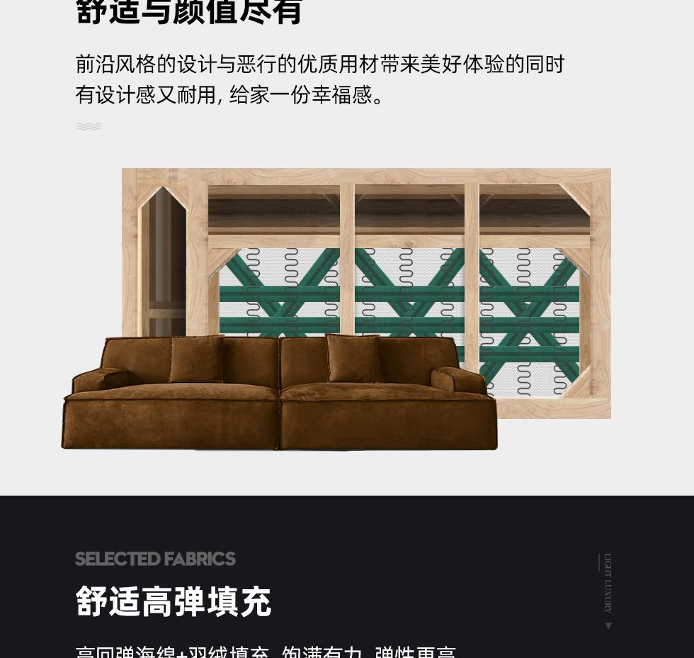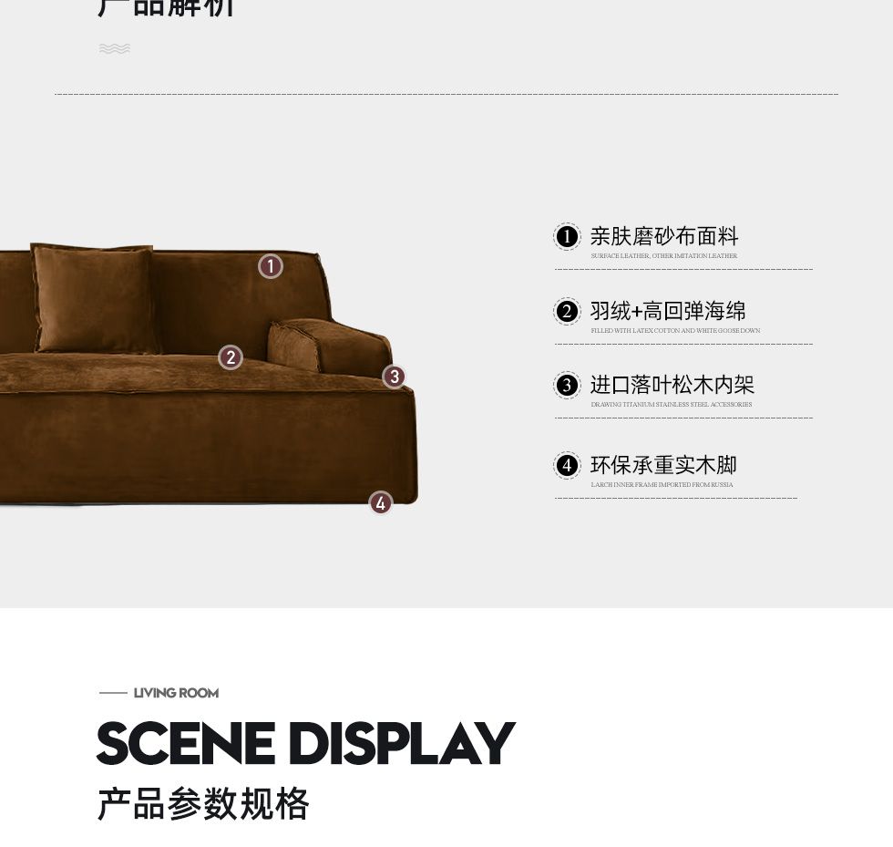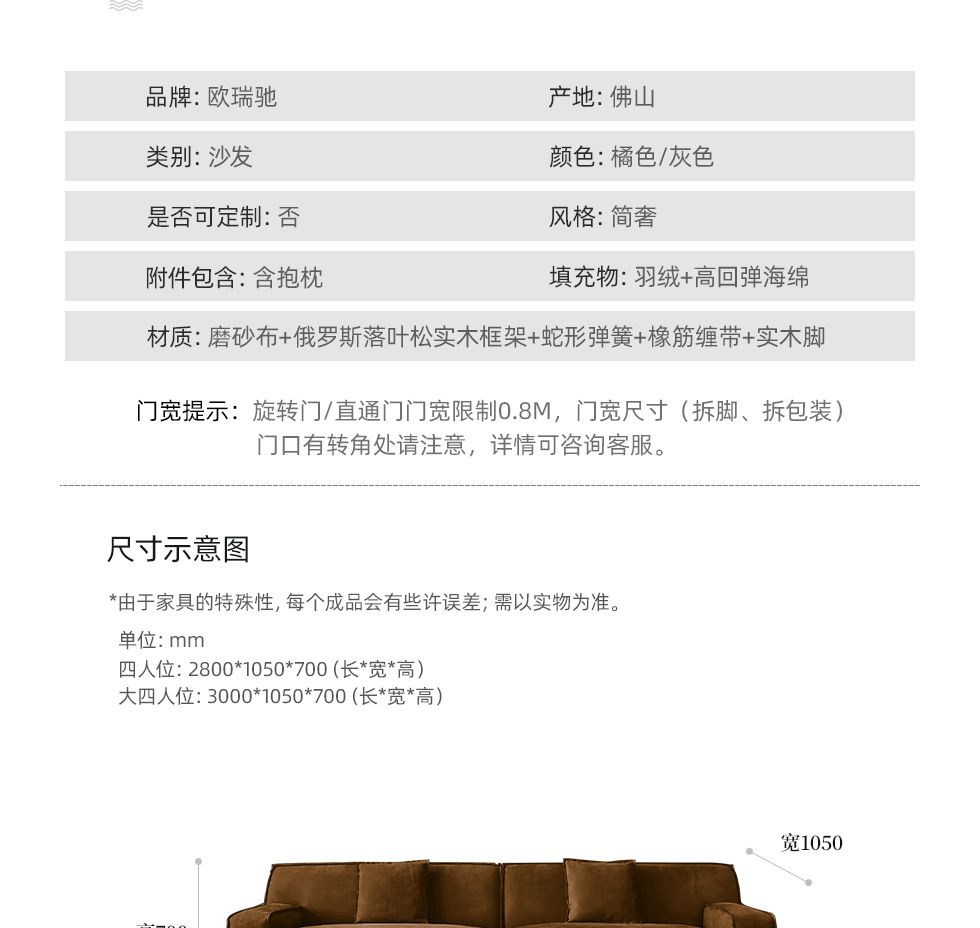 欧瑞驰 大四人沙发 简奢 磨砂布+70%白鹅羽绒+40密度海绵+俄罗斯落叶松实木框架+蛇形弹簧+7CM橡筋缠带+实木脚¥15937