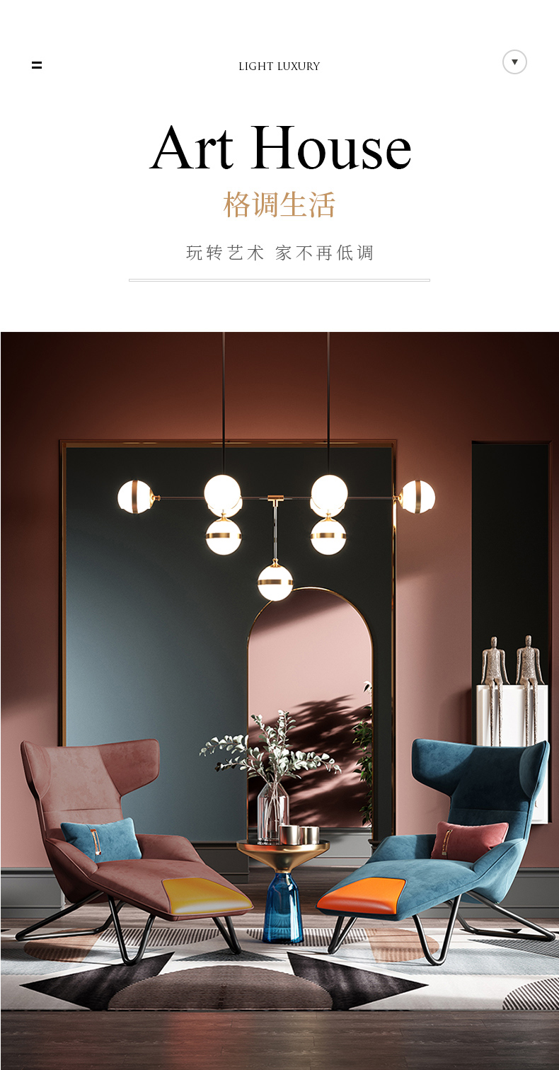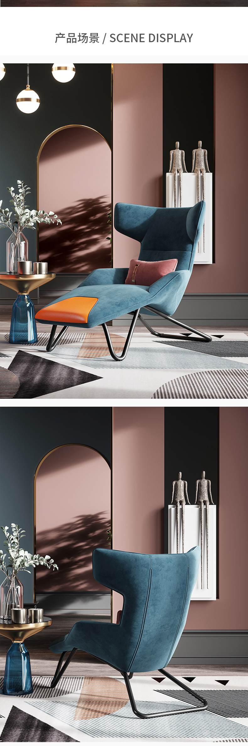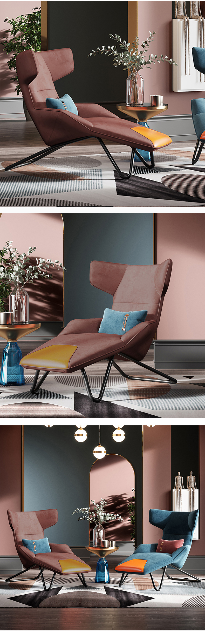 尼博家具 休闲椅 后现代轻奢 实木框架+高回弹海绵+布艺+铁艺脚¥2966