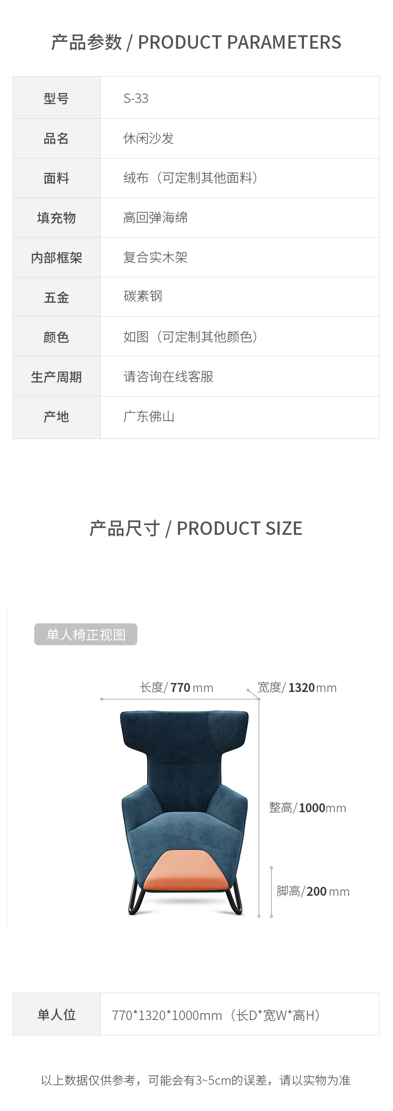 尼博奢恩系列 休闲椅 后现代简约 松木内架+绒布+五金脚 |
